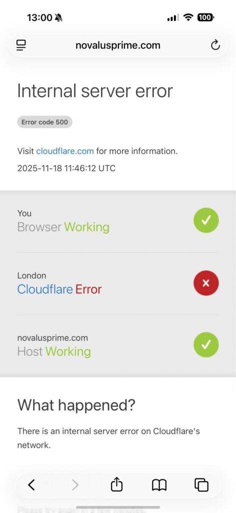 When visiting our websites, our partners were greeted with an error message with the caption “Internal server error”, and in other cases, the text “Please unblock challenges.cloudflare.com to continue” awaits those visiting our pages.