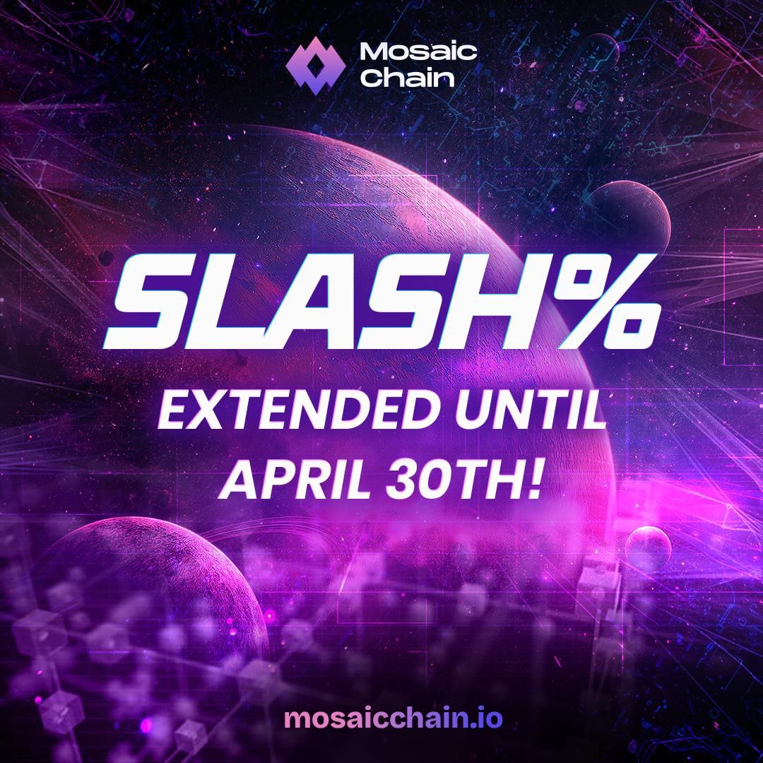 Since the Internet usage issue still persists for some of our validator partners, the owners of Mosaic Galaxy have decided to extend the period of the reduced Slash rate by one month, until midnight on Thursday, April 30, 2026.